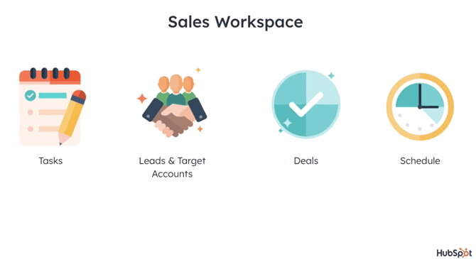 The HubSpot Sales Workspace is a centralised workspace that brings together lead management, prospecting tasks, and scheduling in one place, so you can focus on what needs to get done.