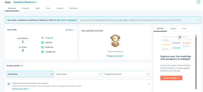 Overview of the HubSpot Sales Workspace Summary tab
